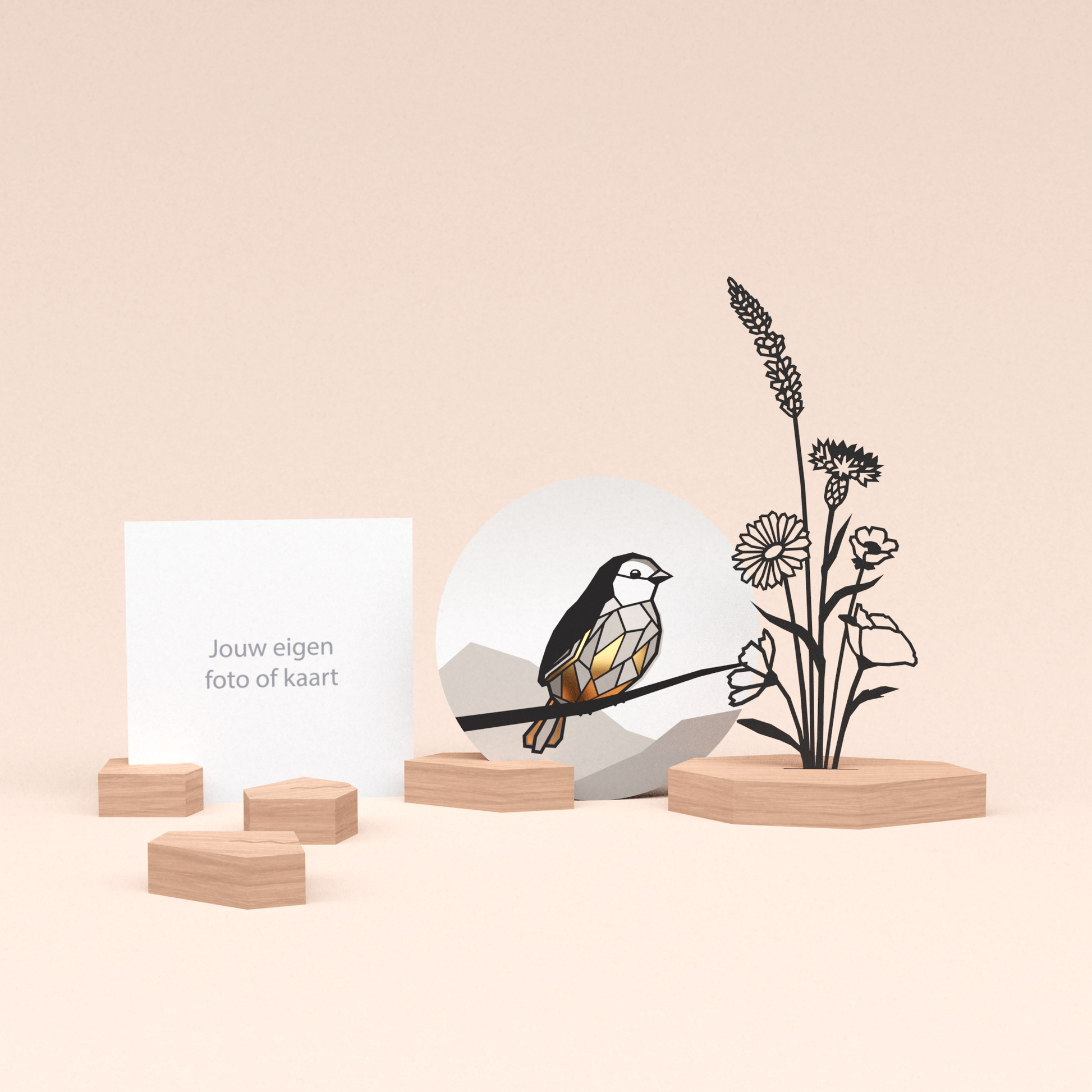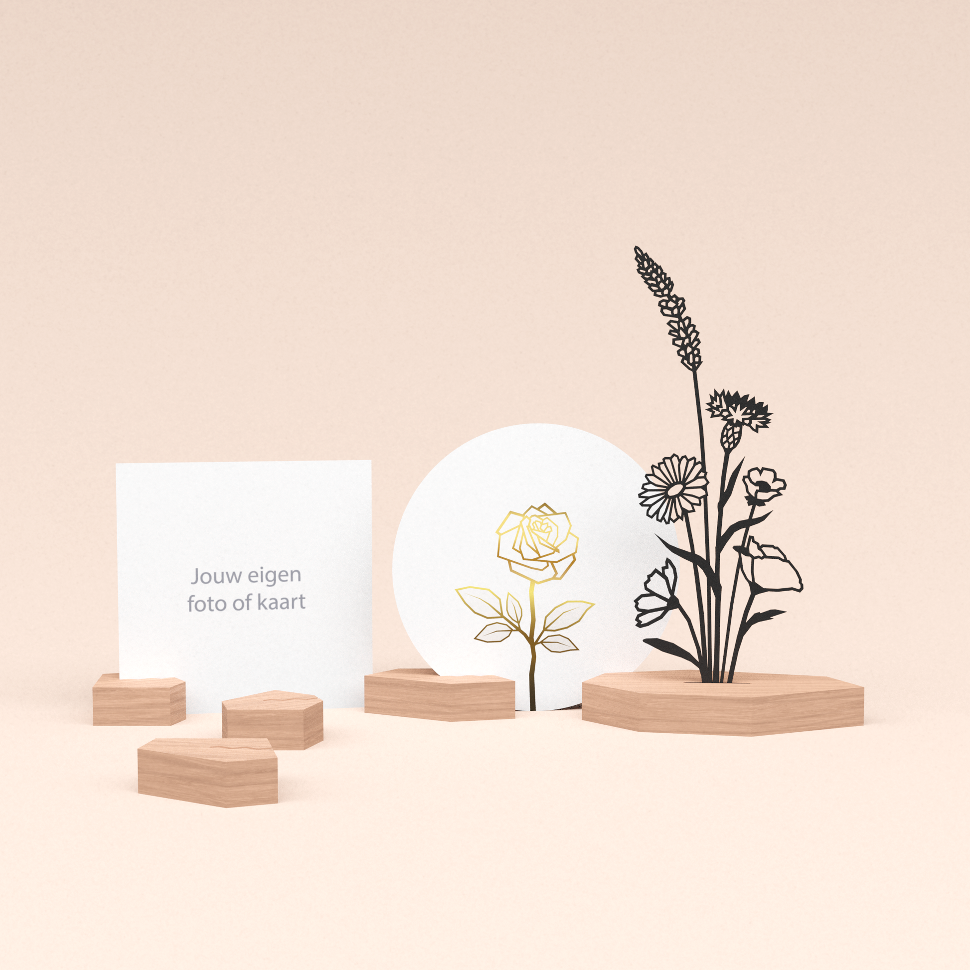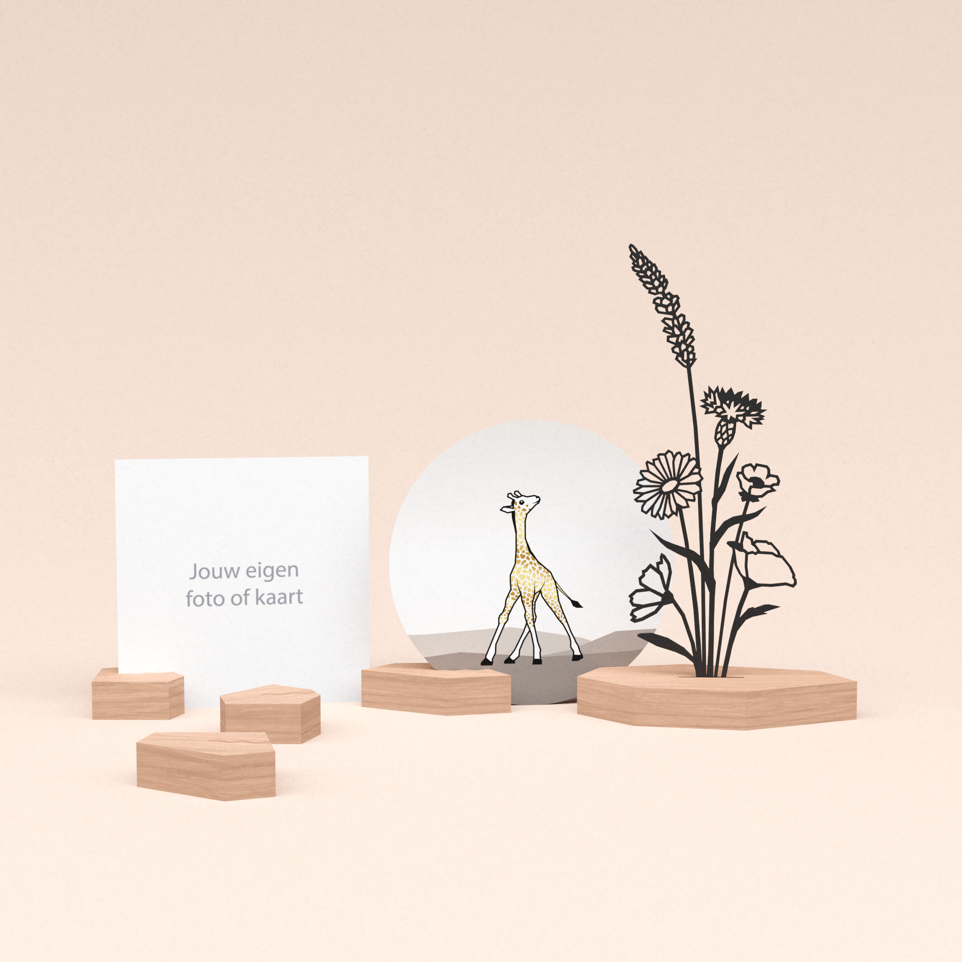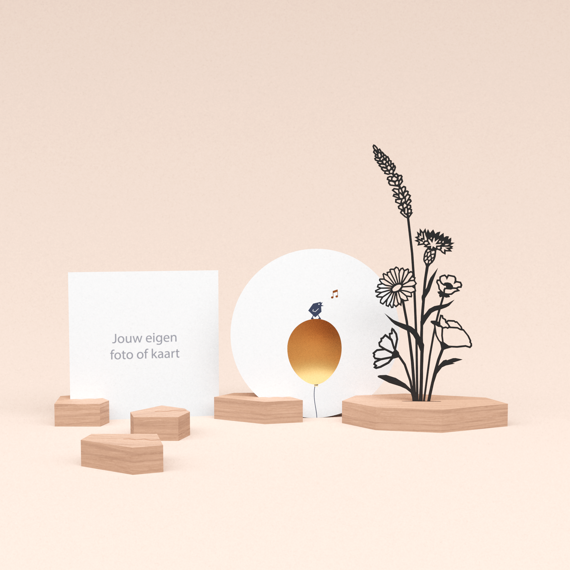 Onze houten designblokjes zijn niet alleen ontworpen om onze unieke ronde wenskaarten vast te houden, maar ook om jouw meest dierbare foto's en persoonlijke kaarten een mooi plekje te geven. Gemaakt om te blijven - als stijlvolle objecten én als dragers van jouw mooiste herinneringen.
