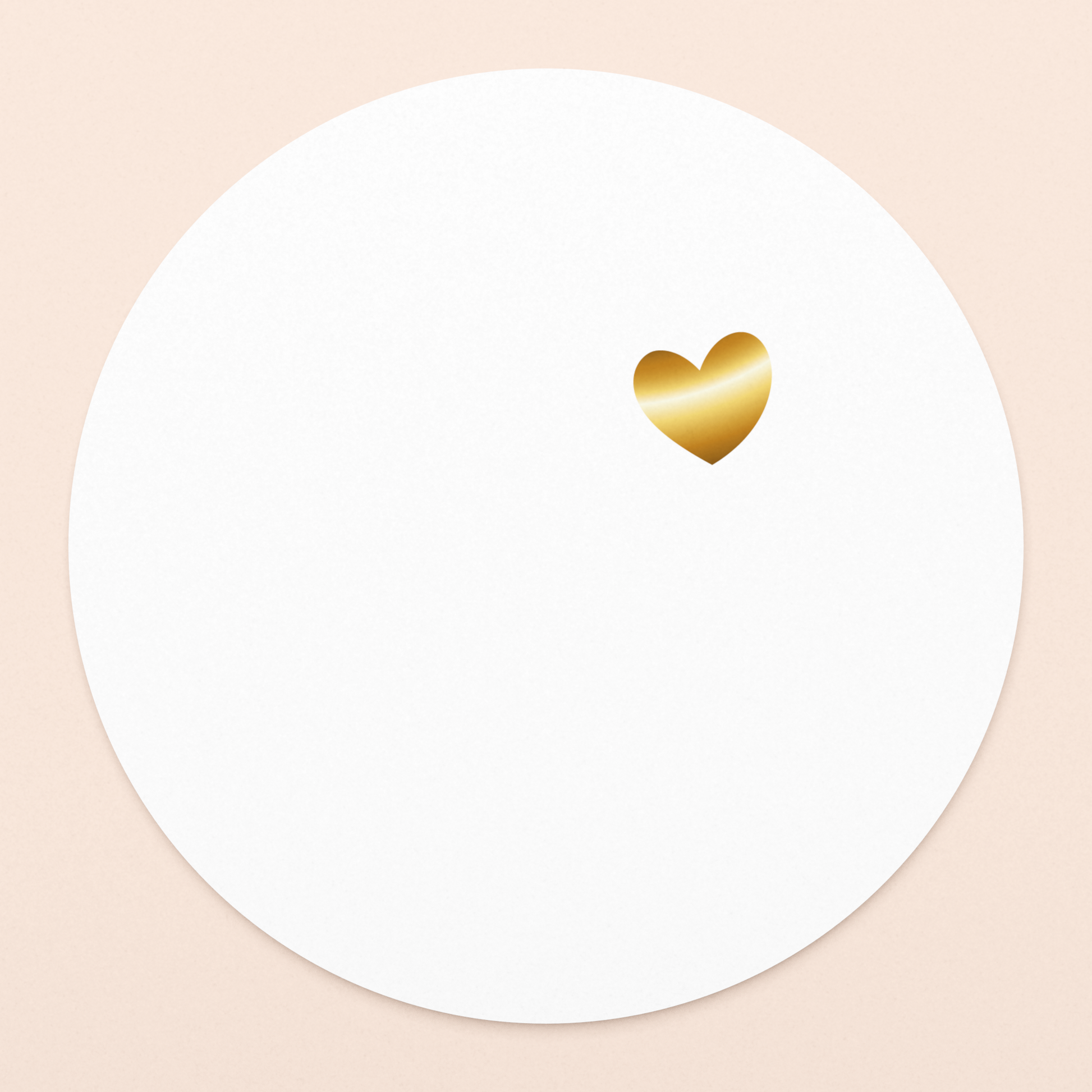 Witte ronde kaart met lief klein gouden hartje. Voor alle liefdevolle en romantische berichtjes. Laat kosteloos jouw persoonlijke woorden op de wenskaart schrijven door onze schrijf-robot Niko!